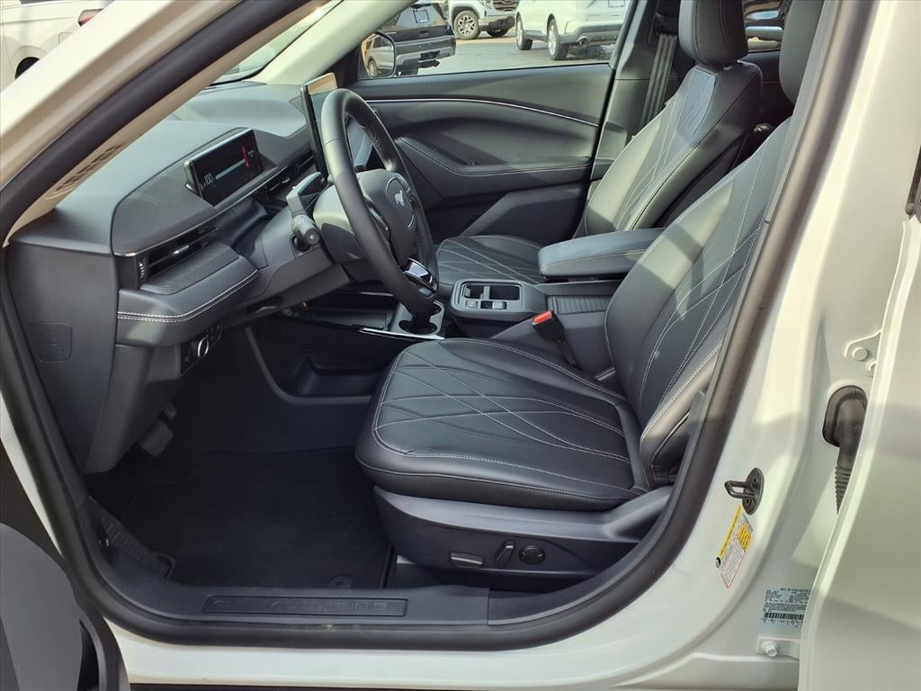 The Ford Mustang Mach-E Select is a 2025 model car that has been meticulously crafted to be the ultimate in automotive luxury. With a low mileage of 200 miles, this SUV all wheel drive vehicle has a star white metallic tri-coat exterior and a black onyx interior. It has a 5 out of 5 star crash test rating and features such as touch screen display, Bluetooth® audio connection, blind spot sensor, on demand four wheel drive, navigation system with voice recognition, and leather seats. The Ford Mustang Mach-E Select is the perfect car for anyone looking for an automotive experience like no other.